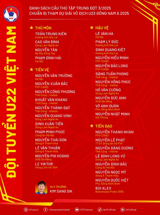 Danh sách tập trung lần này cũng có sự góp mặt của hai cầu thủ Việt kiều đầy triển vọng là tiền vệ Le Viktor (CLB Hồng Lĩnh Hà Tĩnh) và tiền đạo Bùi Alex (đội B của Bohemians Praha 1905, thi đấu tại giải hạng Ba Cộng hòa Séc). Trong khi Le Viktor đang thể hiện tốt tại V.League và đã tham gia các đợt tập trung gần đây, thì Bùi Alex vừa có lần đầu thử sức cùng U22 Việt Nam ở đợt hội quân cuối tháng 5, đầu tháng 6 vừa qua.
