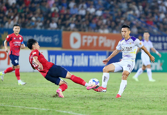 Họ đẩy cao đội hình ngay từ đầu, liên tục tổ chức những pha lên bóng nguy hiểm bên cánh phải với sự cơ động của Văn Quyết và Tuấn Hải. Dẫu vậy, hàng phòng ngự chắc chắn của CAHN đã khiến những nỗ lực ban đầu của đội kháchchưa thể chuyển hóa thành bàn thắng. Phải chờ đến phút bù 45, thế bế tắc mới được phá vỡ.
